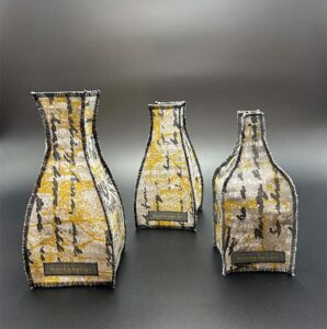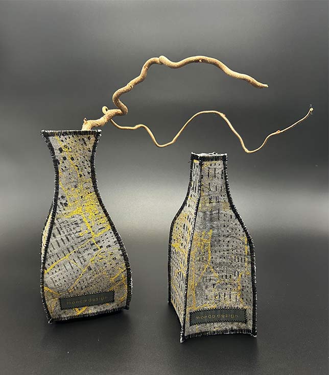 Handgefärbte, bemalte, benähte und bedruckte Stoffe werden zu außergewöhnlichen Accessoires vernäht.